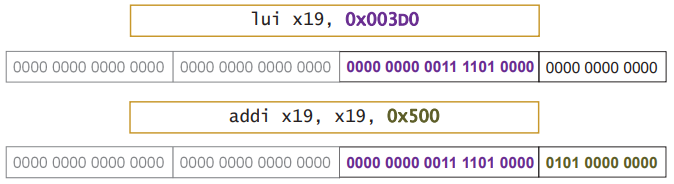 - lui instruction writes bits 12 through 31 of branch address to a temporary register