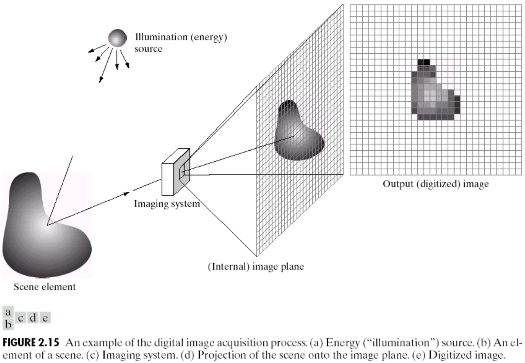 먼저 빛이 surface에 반사되어 Lens를 통과하고, CCD 혹은 CMOS 라고 불리는 센서를 통과하면서 이미지가 만들어진다.