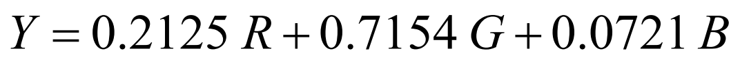 이런 실험 데이터에 기초하면 단순히 RGB값을 평균내는 것 보다는 각 값에 다른 weight를 주어 평균내는 것이 더 좋은 방법이고, 이를 토대로 도출한 보다 정확한 Luminance 계산 방법은 다음과 같다.
