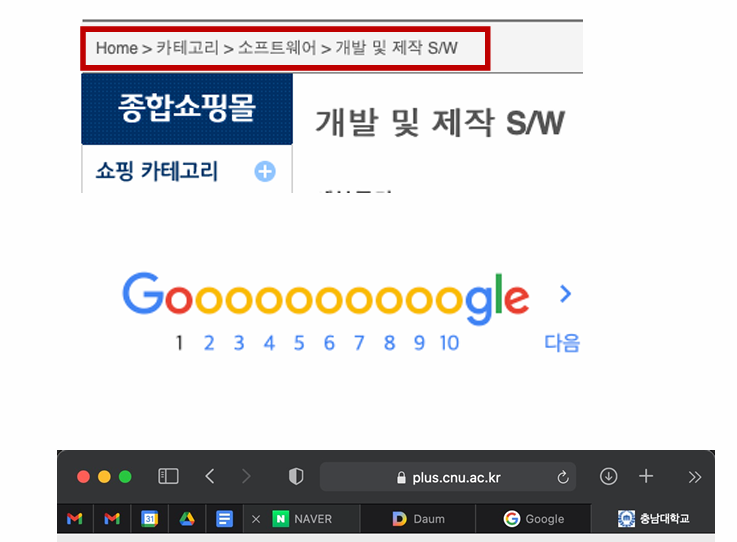 - Breadcrumbs : 웹사이트나 어플리케이션 내에서 사용자의 현재 위치를 계층적으로 표시한다.