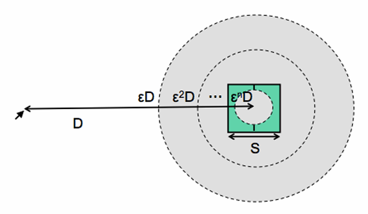 마우스 커서가 하나의 요소를 클릭할 때 까지 걸리는 시간(T)은 마우스 커서와 요소 사이의 거리(D)와 요소의 너비(S)를 이용해 구할 수 있다.