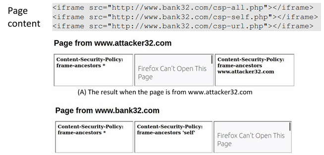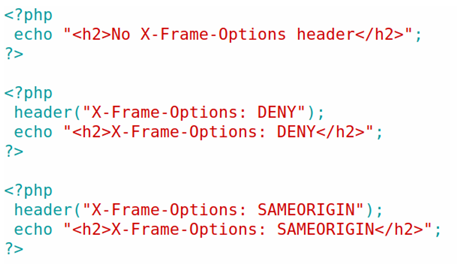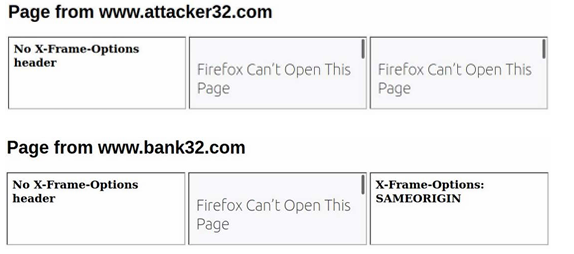 HTTP 헤더의 X-FRAME-OPTIONS 옵션을 사용하면, framing을 허용할지 여부를 결정할 수 있다.